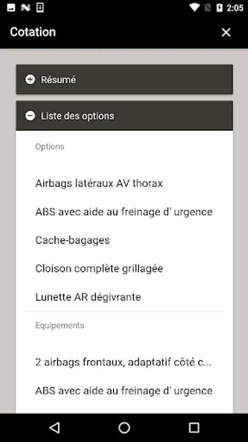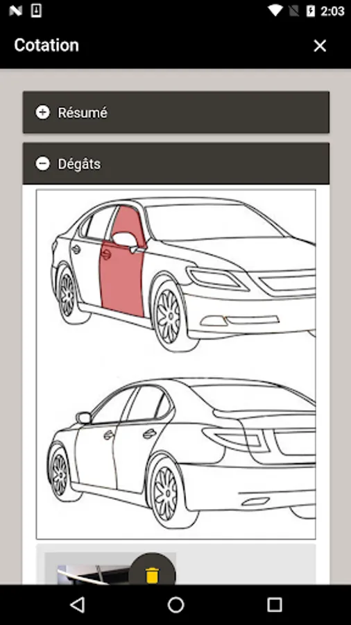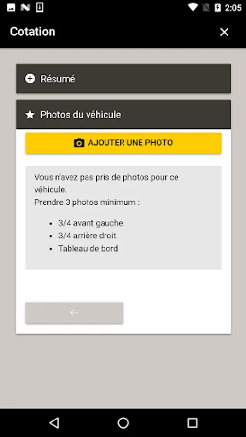 The application allows a RRG seller to get the listing of a vehicle by sending a card with it (vehicle options, photos of damage).