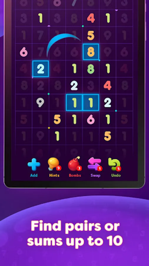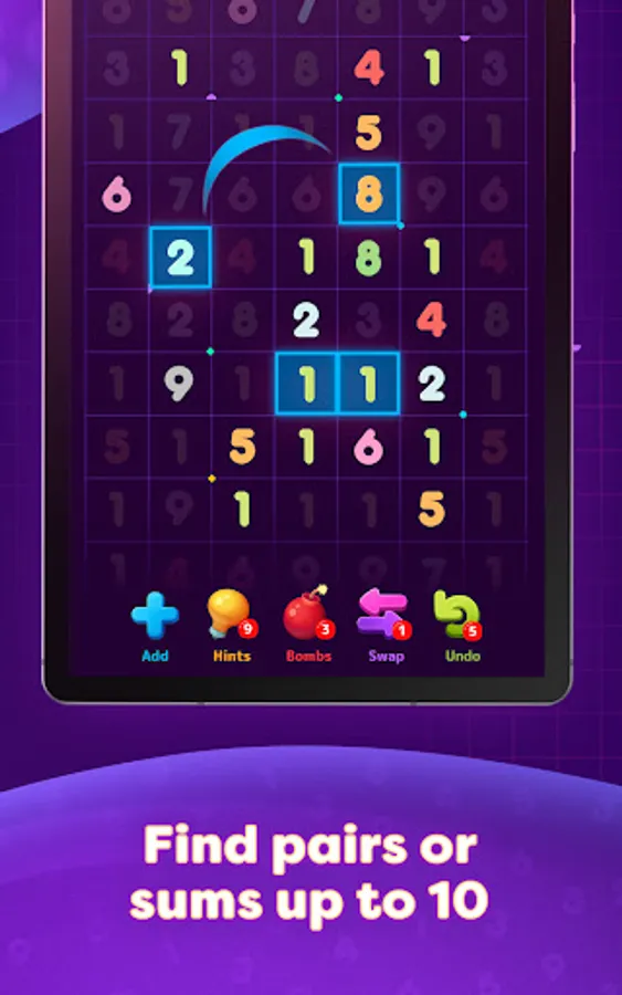 💣 BOMBS. This useful booster helps you to get rid of extra numbers in one tap. Just move the red area to choose the target. As a result, you will blow up 9 numbers at once!