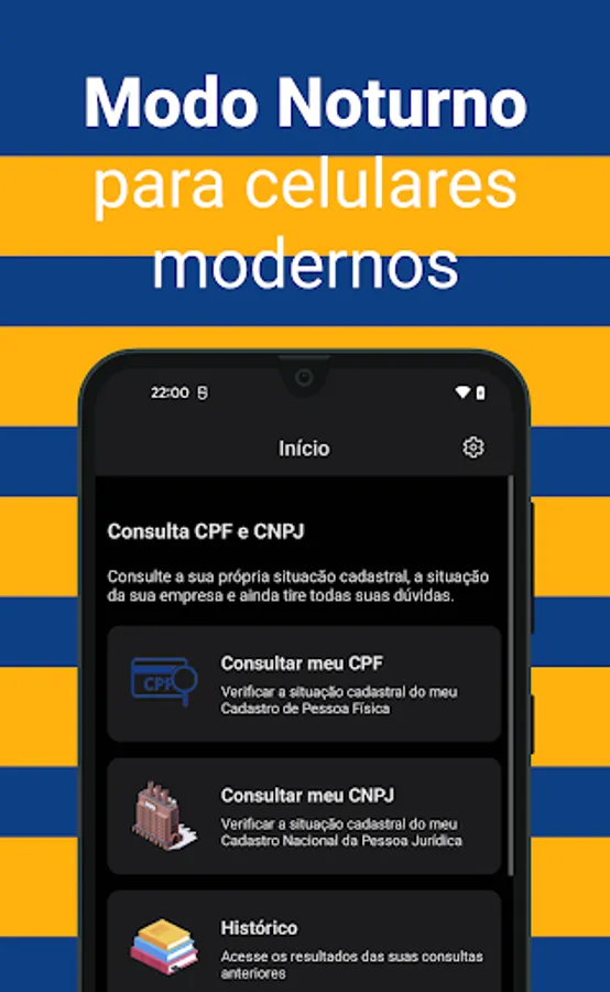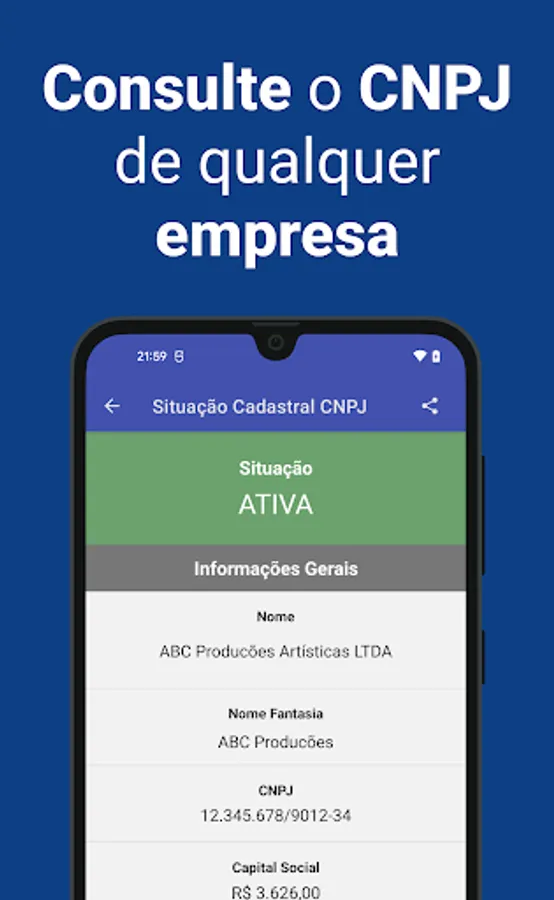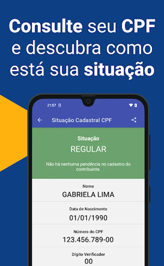 It is possible to query the CPF and CNPJ directly on the official website of the Federal Revenue, however we created this app to provide you with a reliable, simple and fast experience directly from your cell phone. We emphasize that the application is NOT a government official and has no intention of being associated with the Federal Revenue, Serasa or any official body.