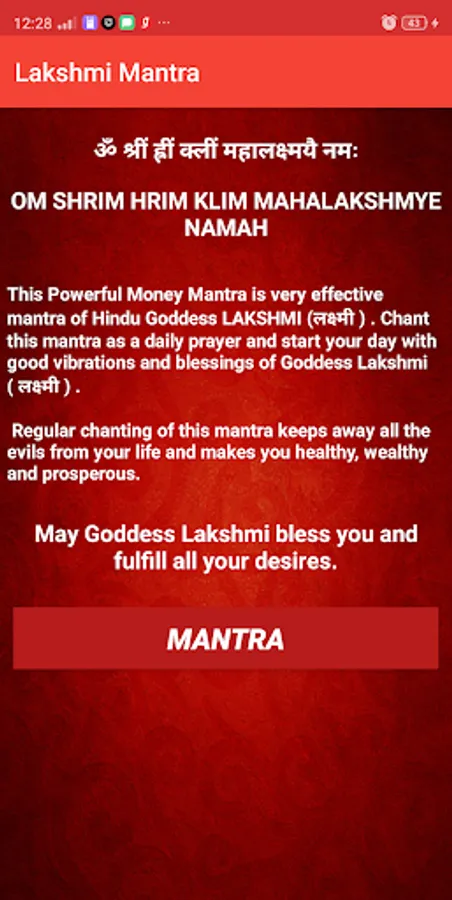 Chant this mantra as a daily prayer and start your day with good vibrations and blessings of Goddess Lakshmi ( लक्ष्मी ) .