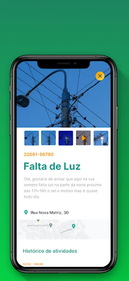 Application that allows community leaders to follow up on their community's emergency request. Based on a protocol, generated by the company's formal channels (Branch, Virtual Agency, telephone and WhatsApp), community leaders previously registered on the platform will be able to request the handling of these tickets. The light team's mission is to monitor these problems until they are resolved.