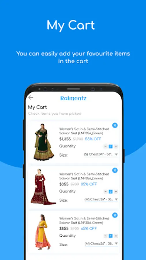 Download the Raimentz app and start searching for your products. Raimentz offers you varieties of traditional Indian dresses, Punjabi suits, saree and, other Punjabi dresses at very affordable prices directly from suppliers.