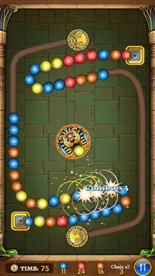 ★ Match 3 marbles or more of the same color and create a magic blast to eliminate those marbles.