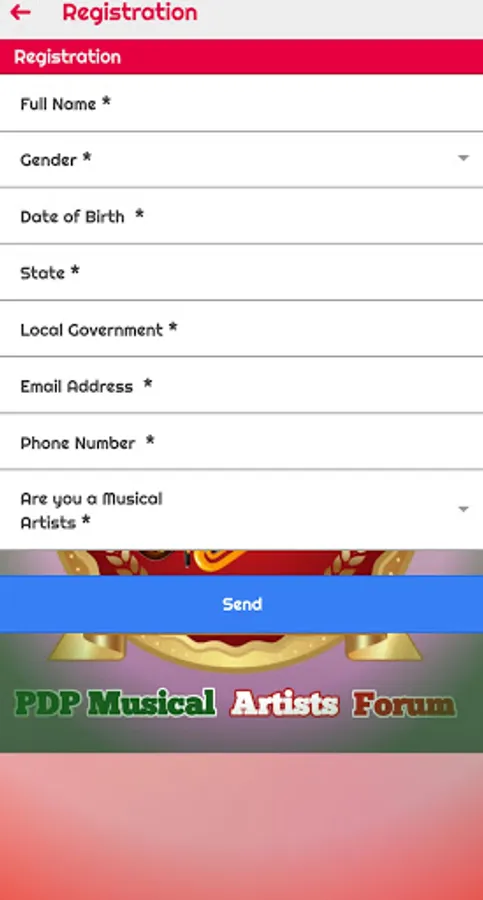 this app provides a platform for the PDP musical artist in which you can register and upload contents.