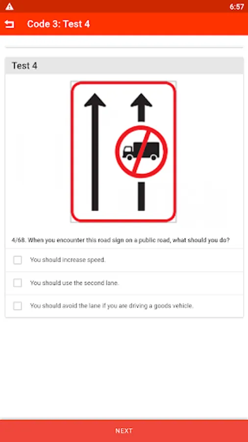 * TESTS tab - comes with plenty of tests that are structued in a similar way to the actual LEARNER'S LICENSE TEST.