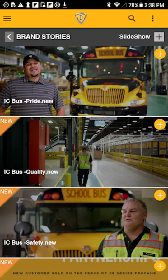 The IC Bus Sales app provides IC Bus sales representatives with access to enterprise wide, non-confidential marketing material. This app is a mobile sales enablement tool used to present content, videos, sell-sheets, and more. It ensures our sales reps always have the right information in their hands.
