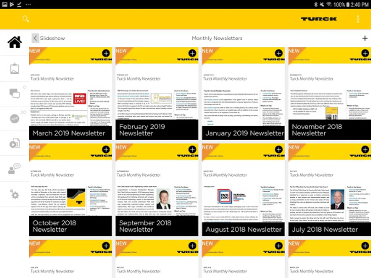 With the My Turck sales app, you can quickly and easily access brochures, flyers, part number keys, videos, white papers, certifications and more - all on your mobile device! This app also allows you to create custom presentations based on Turck materials. You can easily search all content and forward specific items to existing or potential customers. My Turck is meant for Turck's sales channel and employees. It is not for use by the public.