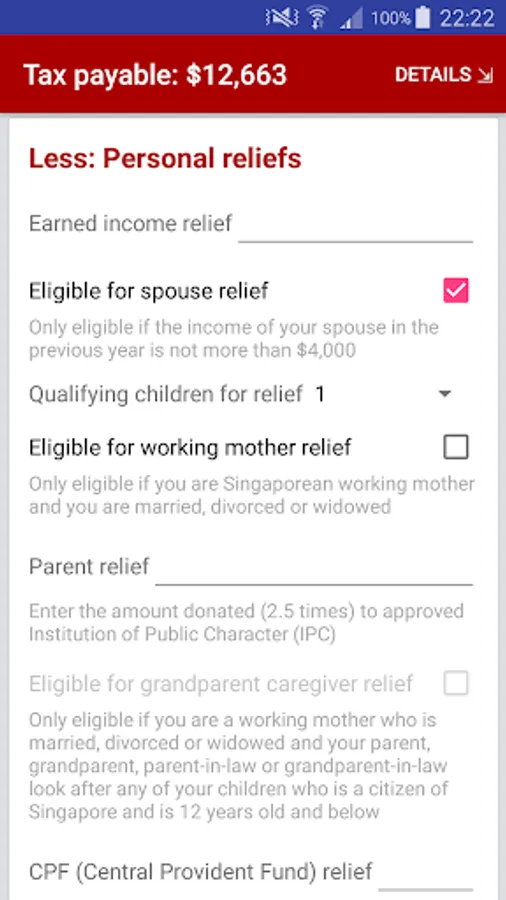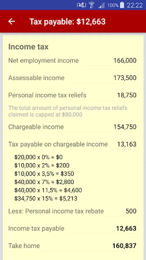 Wondering how much difference that pay rise would make in Singapore? Use our app to work out tax and reliefs on your wage for Year of Assessment 2017, based on the official rates from the Inland Revenue Authority of Singapore (IRAS).