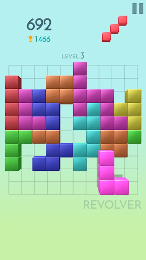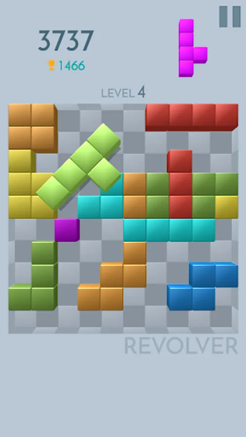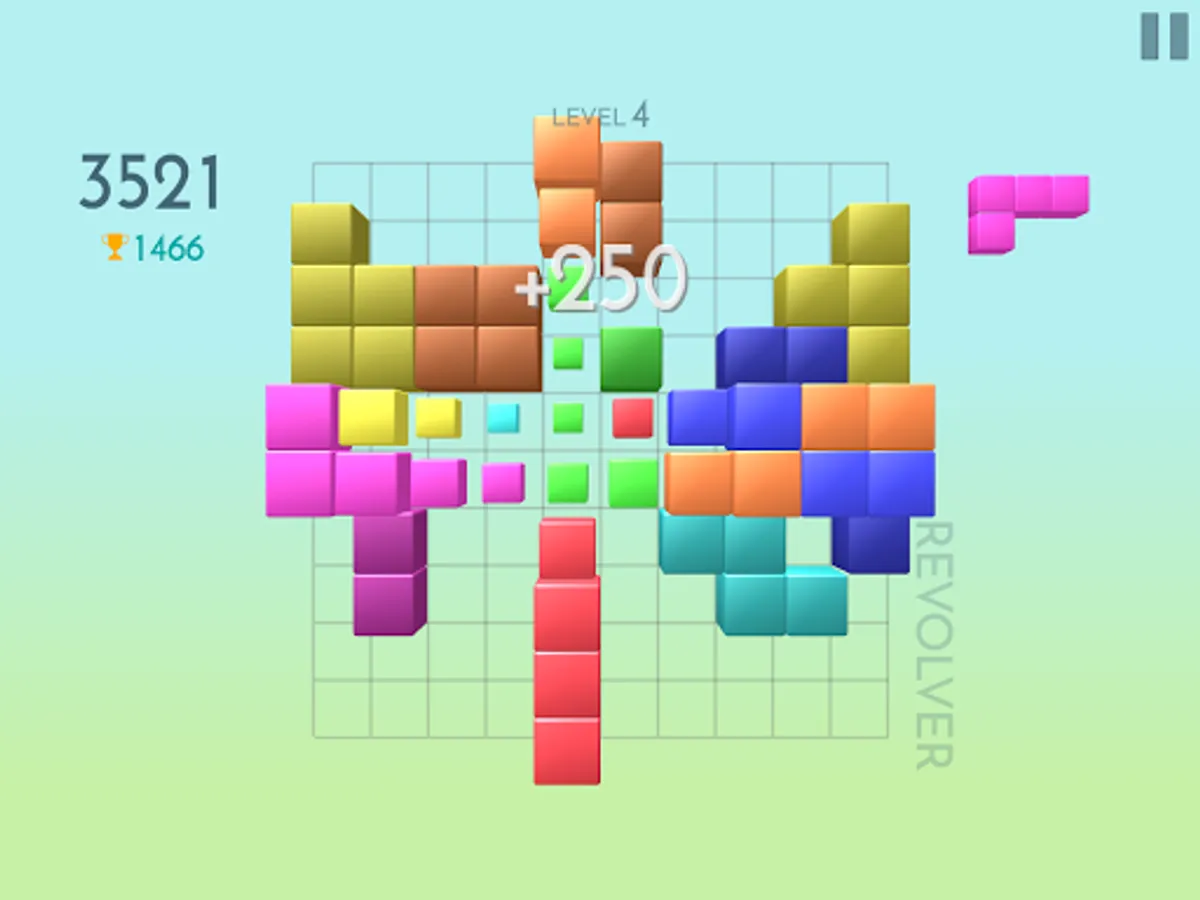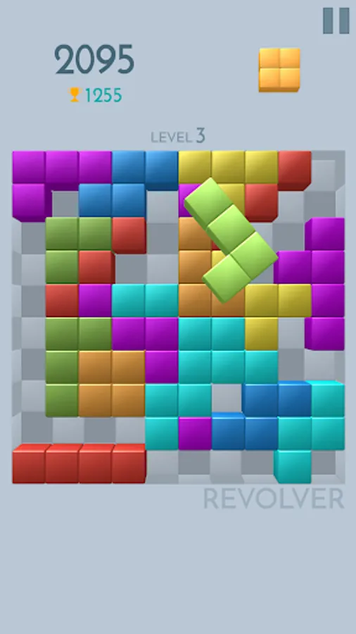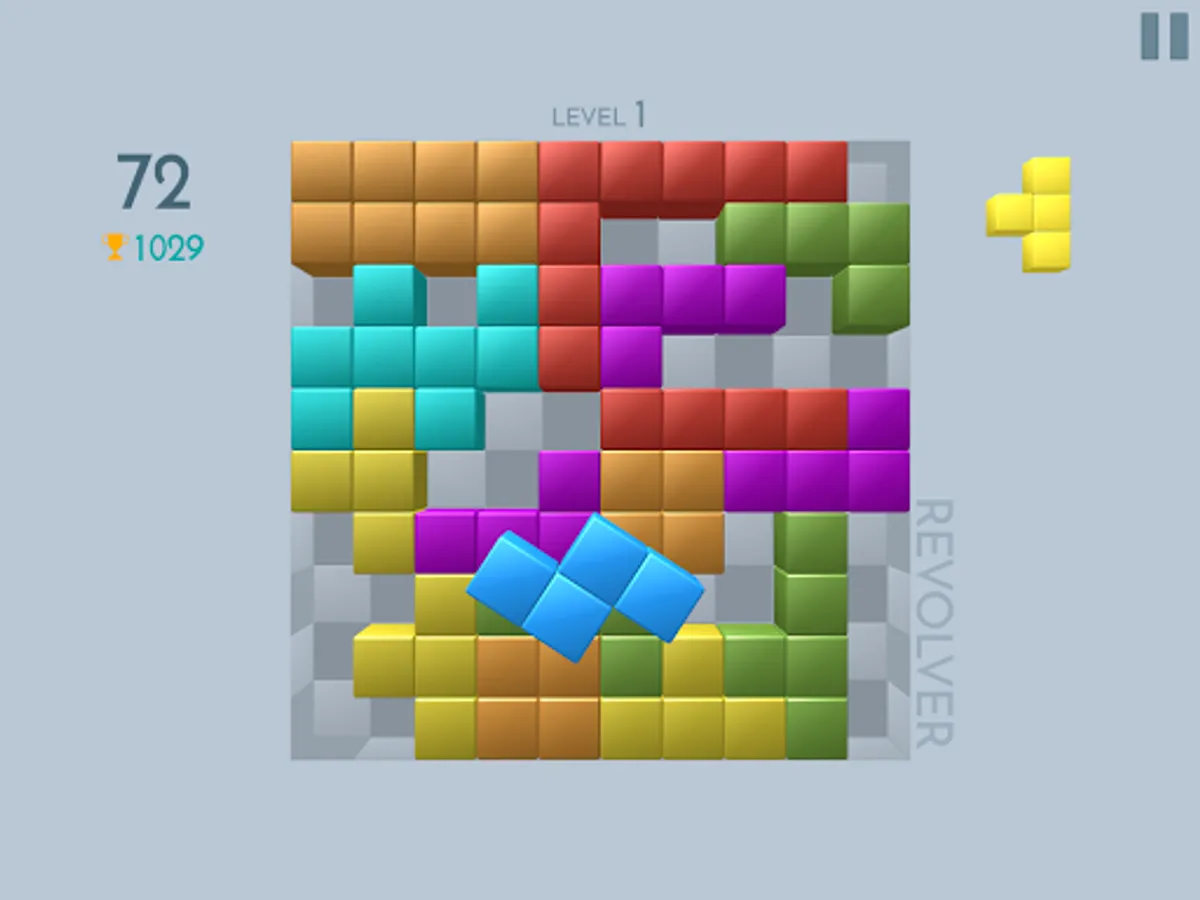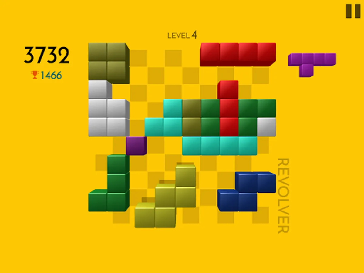 • Revolver: blocks can be rotated, many levels & block shapes.