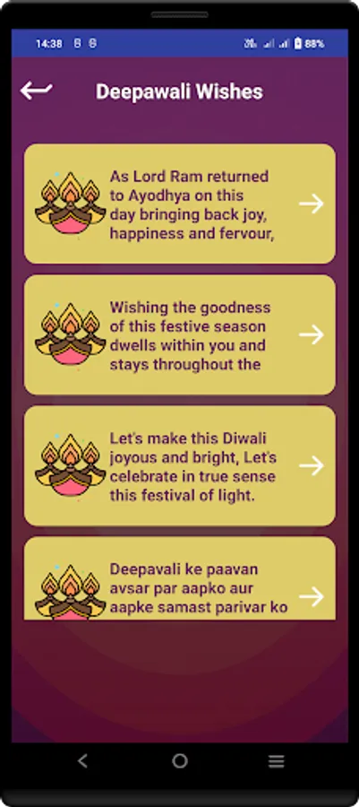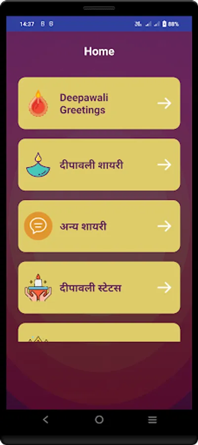 This App contains all kinds of festival wishes Shayari, Diwali Greetings & Shayari Status in hindi.