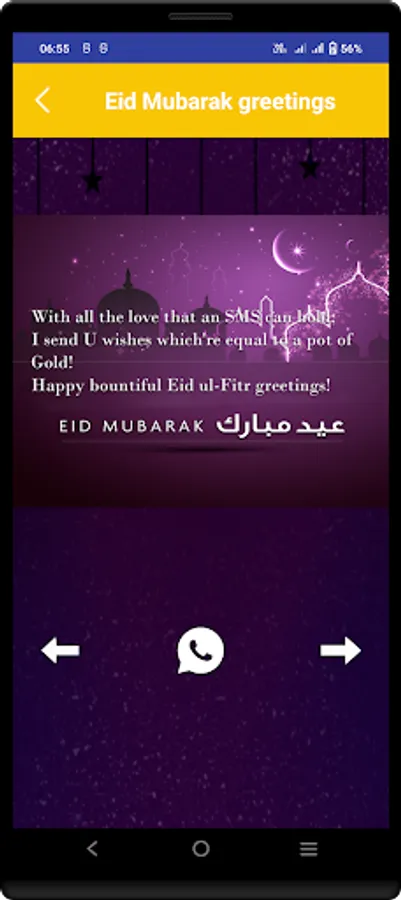 If you are looking for free beautiful Eid Mubarak greeting cards to be sent to your Muslim friends, just download this app and select any of the available lovely Eid Mubarak greeting ecards and you can send to them anywhere anytime, simple and fast!