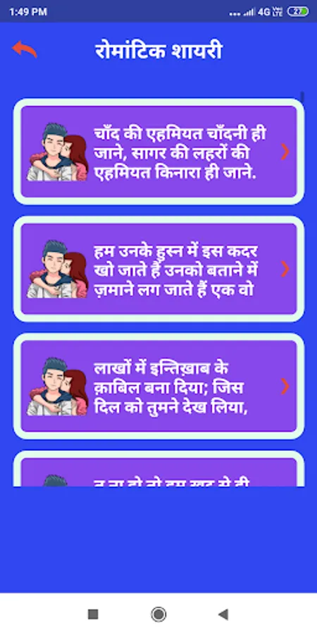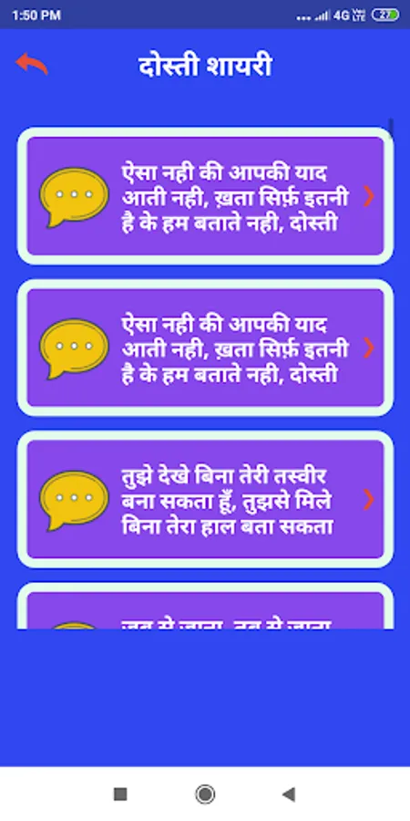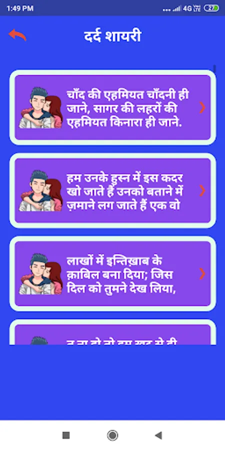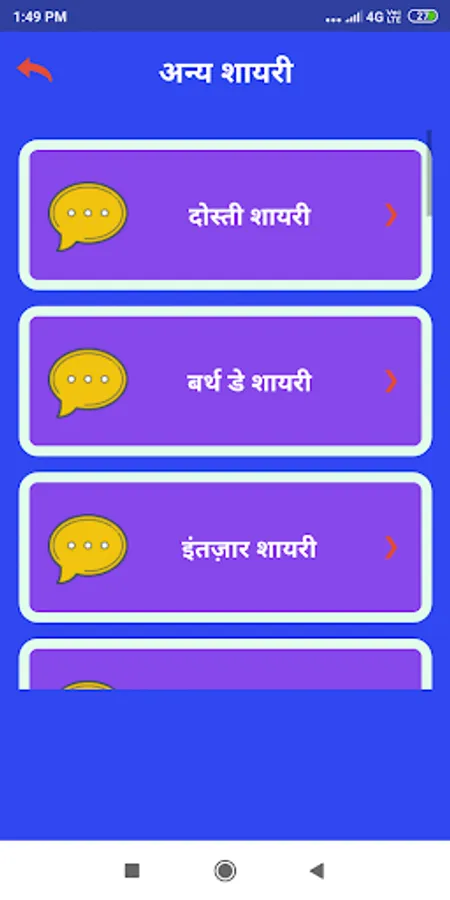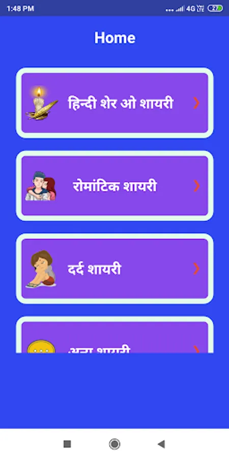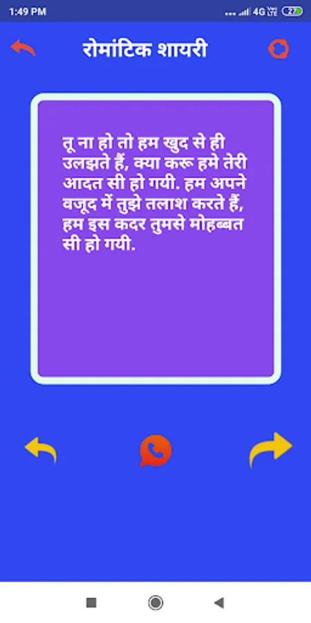 Hindi Shayari is a superb app for Hindi Shayari Lovers.
