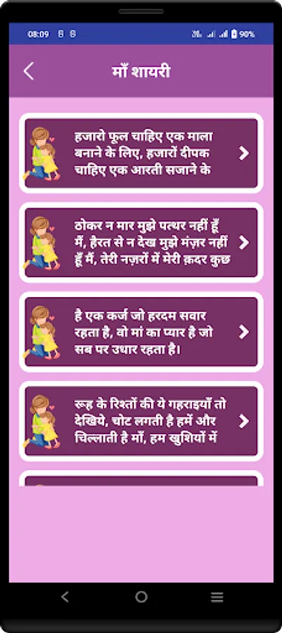 This app contains maa shayari, mummy shayari & AAI Shayari.