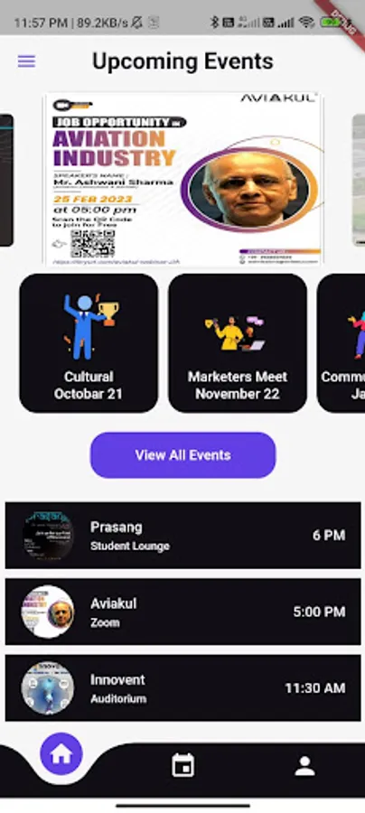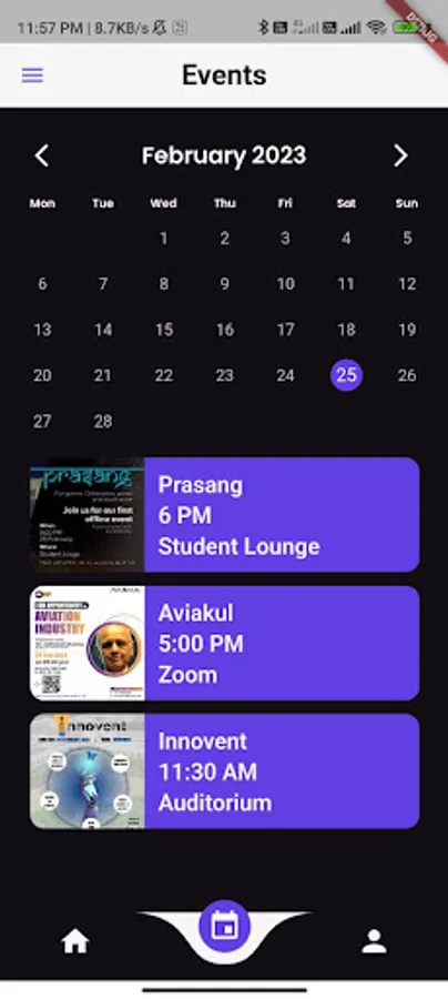 Upon opening the app, users get to display the upcoming events. Users can also browse through the app's full calendar of events.