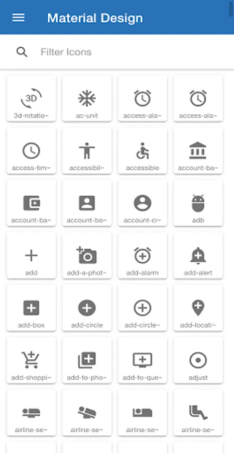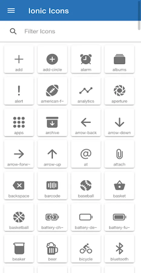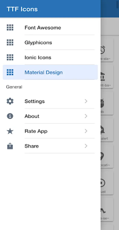 TTF Icons. Browsable icon library for Font Awesome, Glyphicons, Ionic and Material Design.