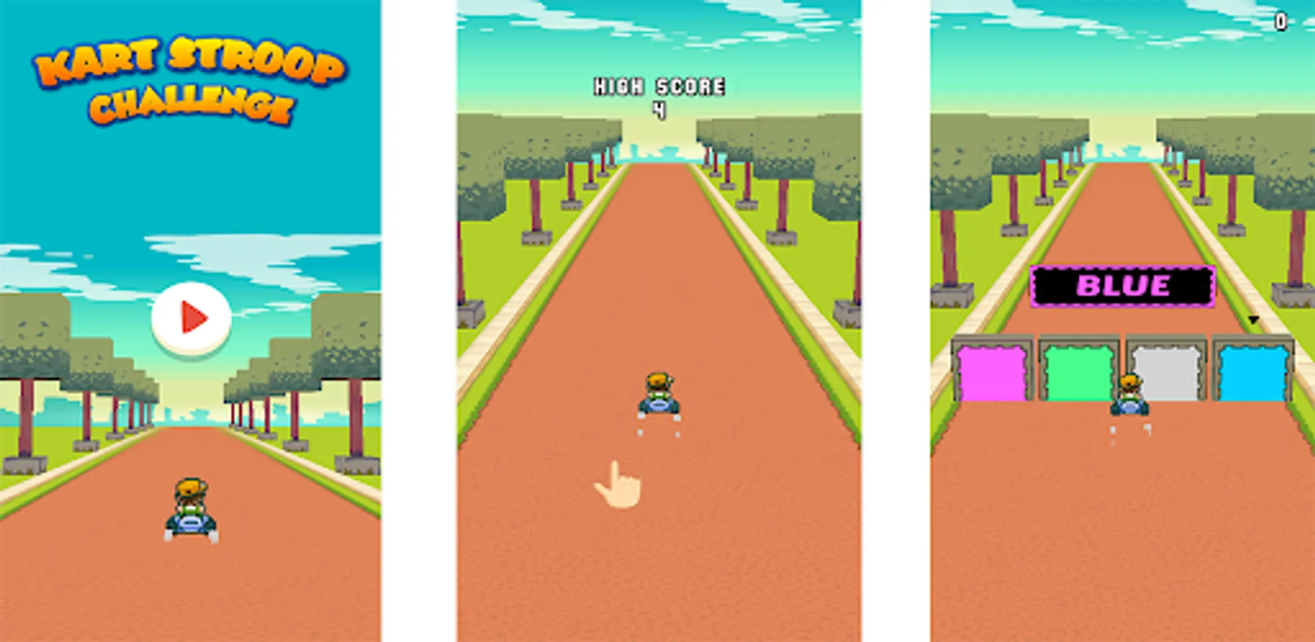 Kart Stroop Effect Challenge is a game based on intuition and perception. Collect points as possible by entering the color written and not the color of the word.