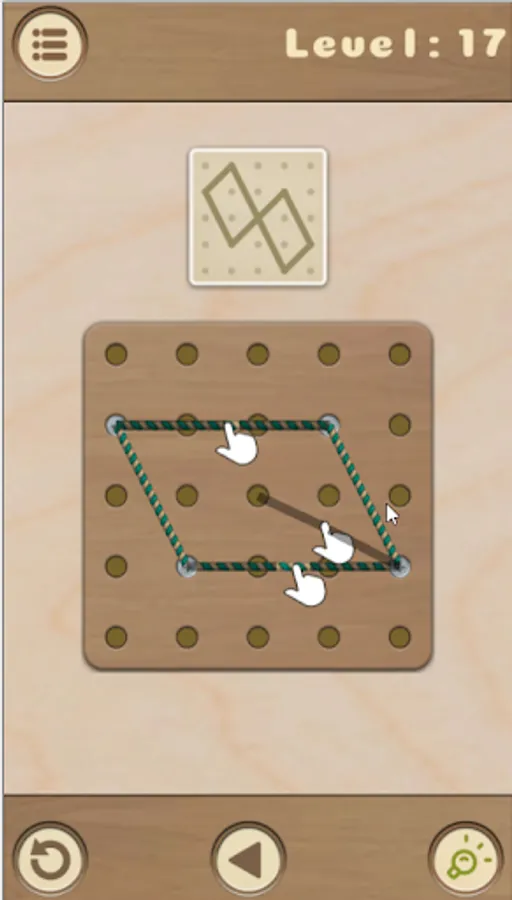 Rope Star is a logic puzzle in a classic graphic style. Use the ropes to create the desired shape to advance to the next level. The nails cannot be moved, but you can undo the action with the “Back” button. With each level the difficulty of the game increases. If you can’t find a solution, you can always use the “Hints” button. Nice graphics and music will accompany you at all levels, not letting you get tired.