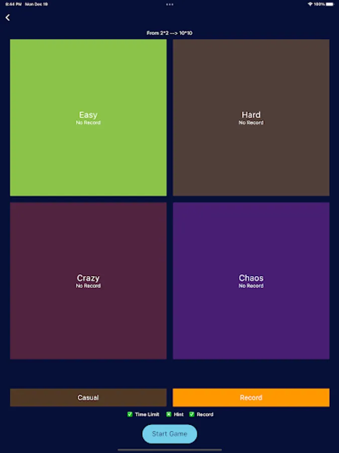 In Casual mode, players can play freely without any time limit. This mode is more relaxed, allowing players to enjoy the game without any pressure. Similarly, this mode also has different difficulty levels to suit players' preferences.