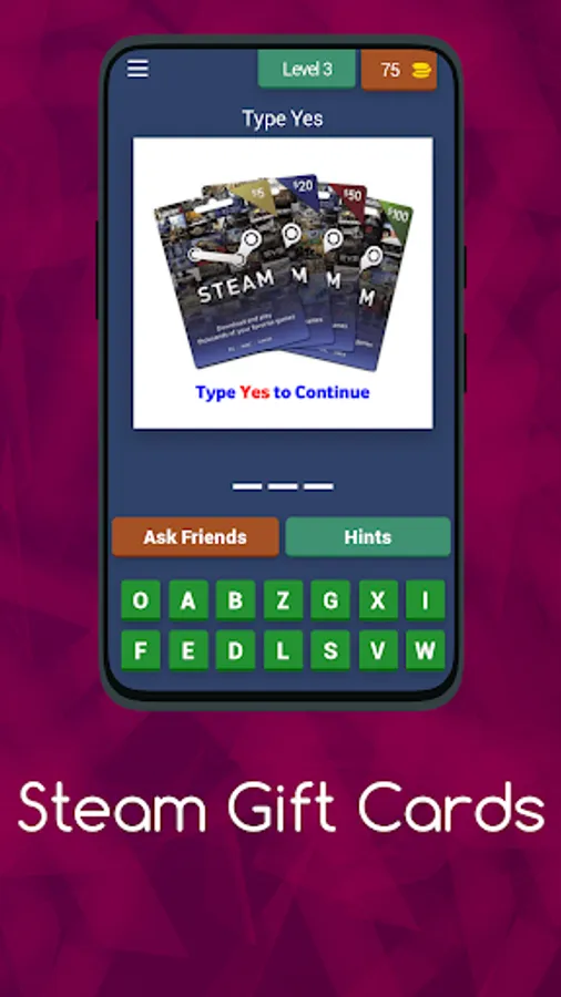 Introducing Steam Gift Cards Trivia, the ultimate quiz game that you have been waiting for! Challenge your knowledge, expand your trivia expertise and win fantastic Steam Gift Cards This FREE trivia game is the perfect answer for those who just can't get enough of quizzes, trivia, and brain puzzles! Come, join the fun and discover various game modes.