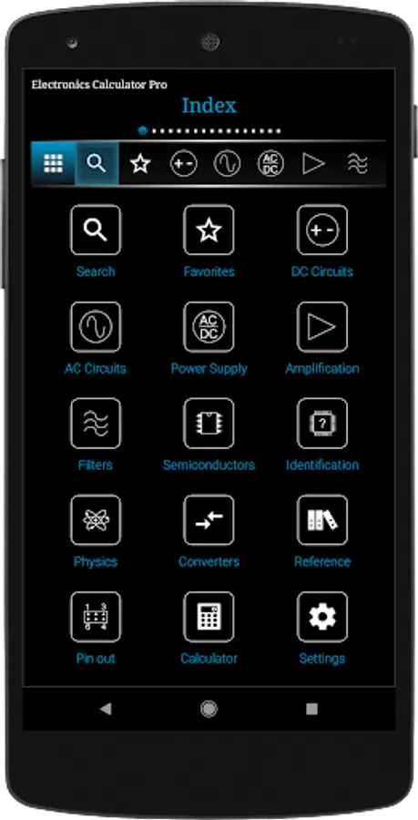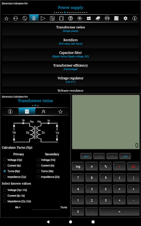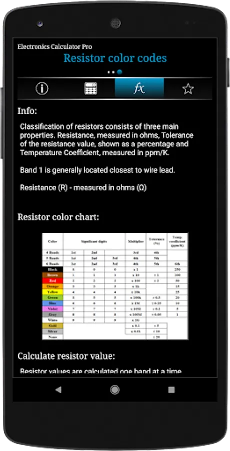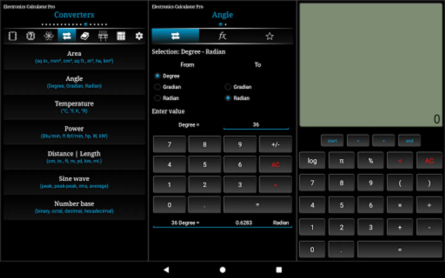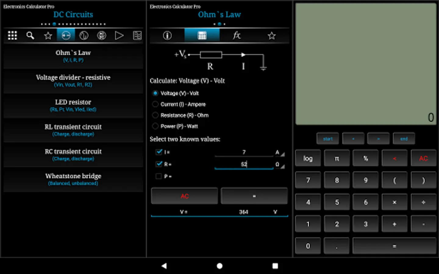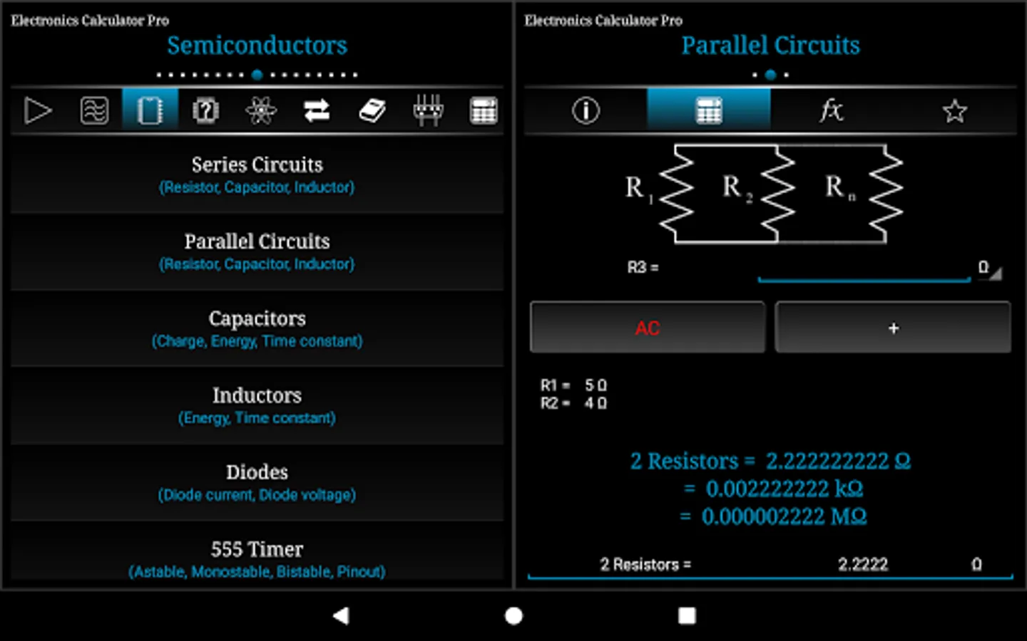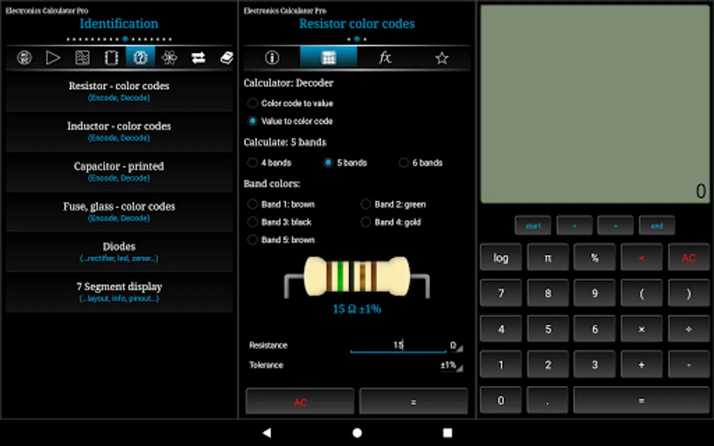 Electronics Calculator Pro is a utility application consisting of various calculators, conversions, reference tables, pin outs and basic pocket calculator.