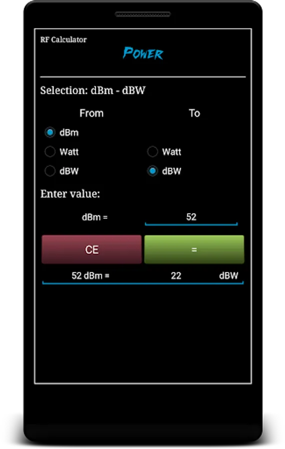 • Power (dBm, Watt, dBW)