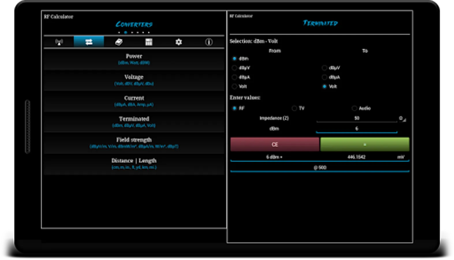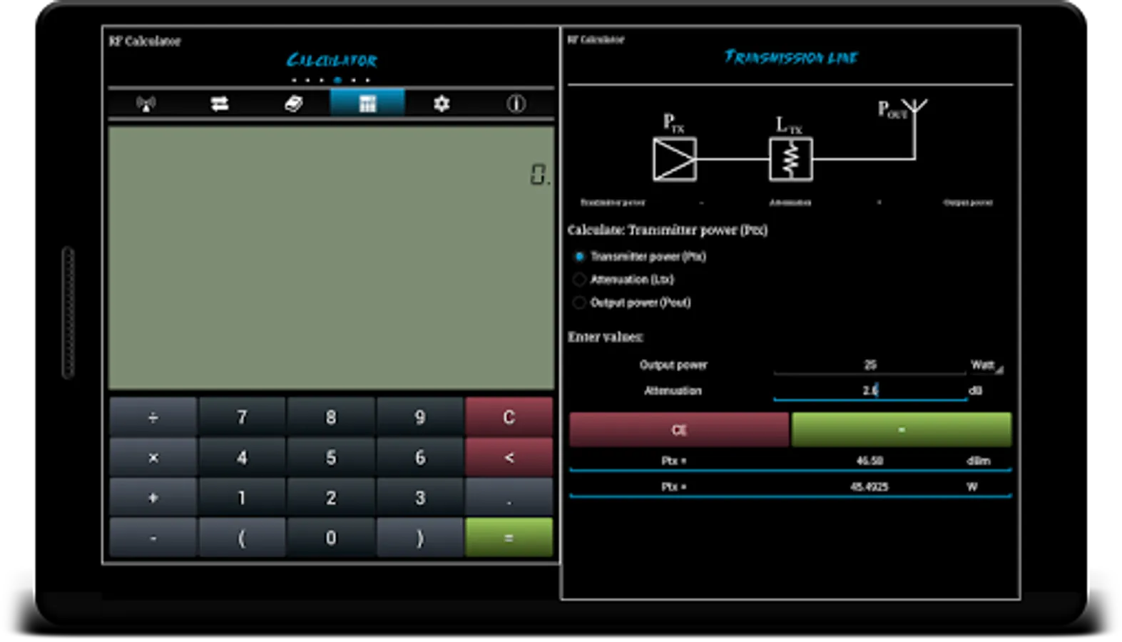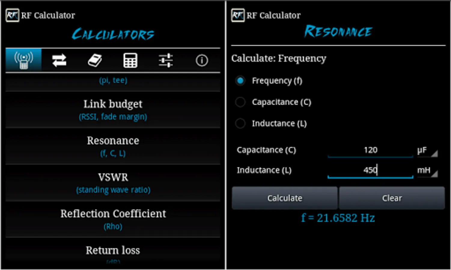 RF Calculator is a utility application consisting of various calculations, conversions and reference tables.