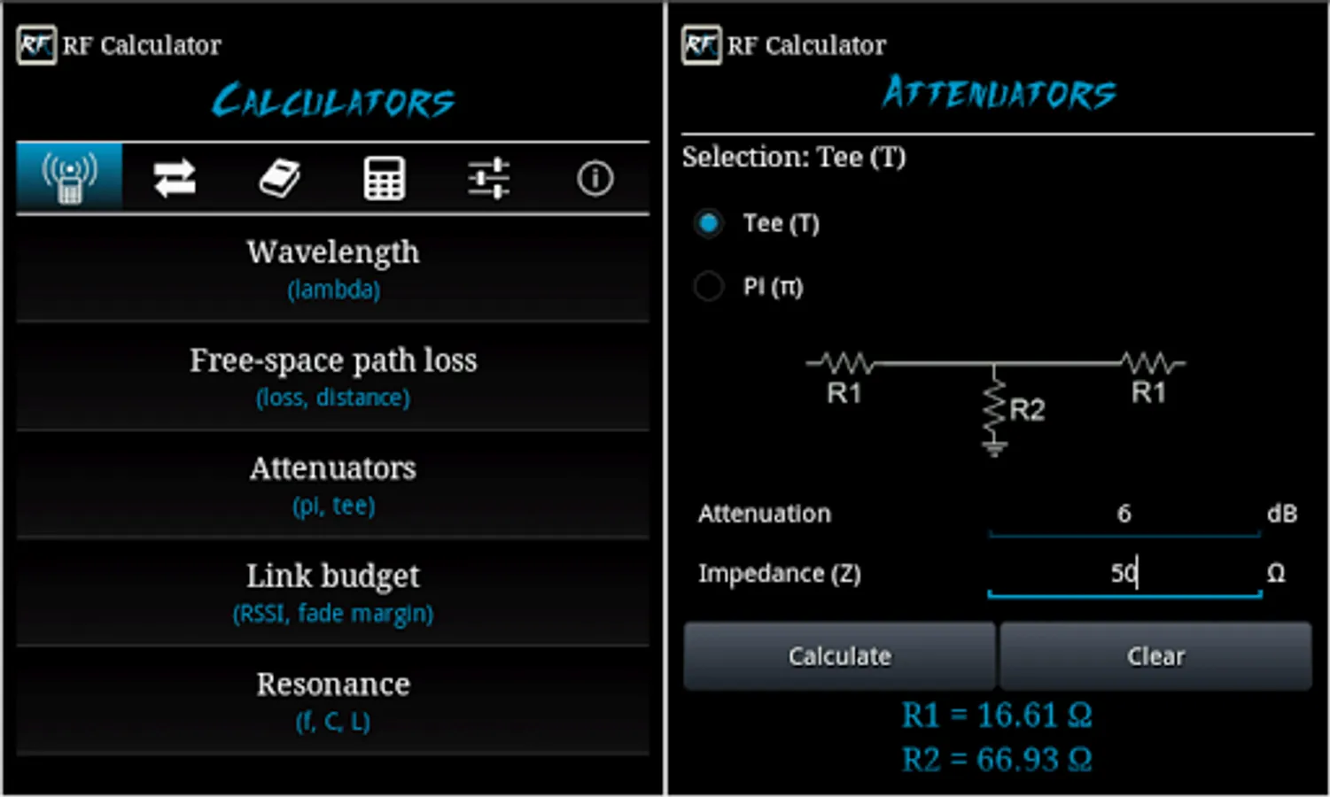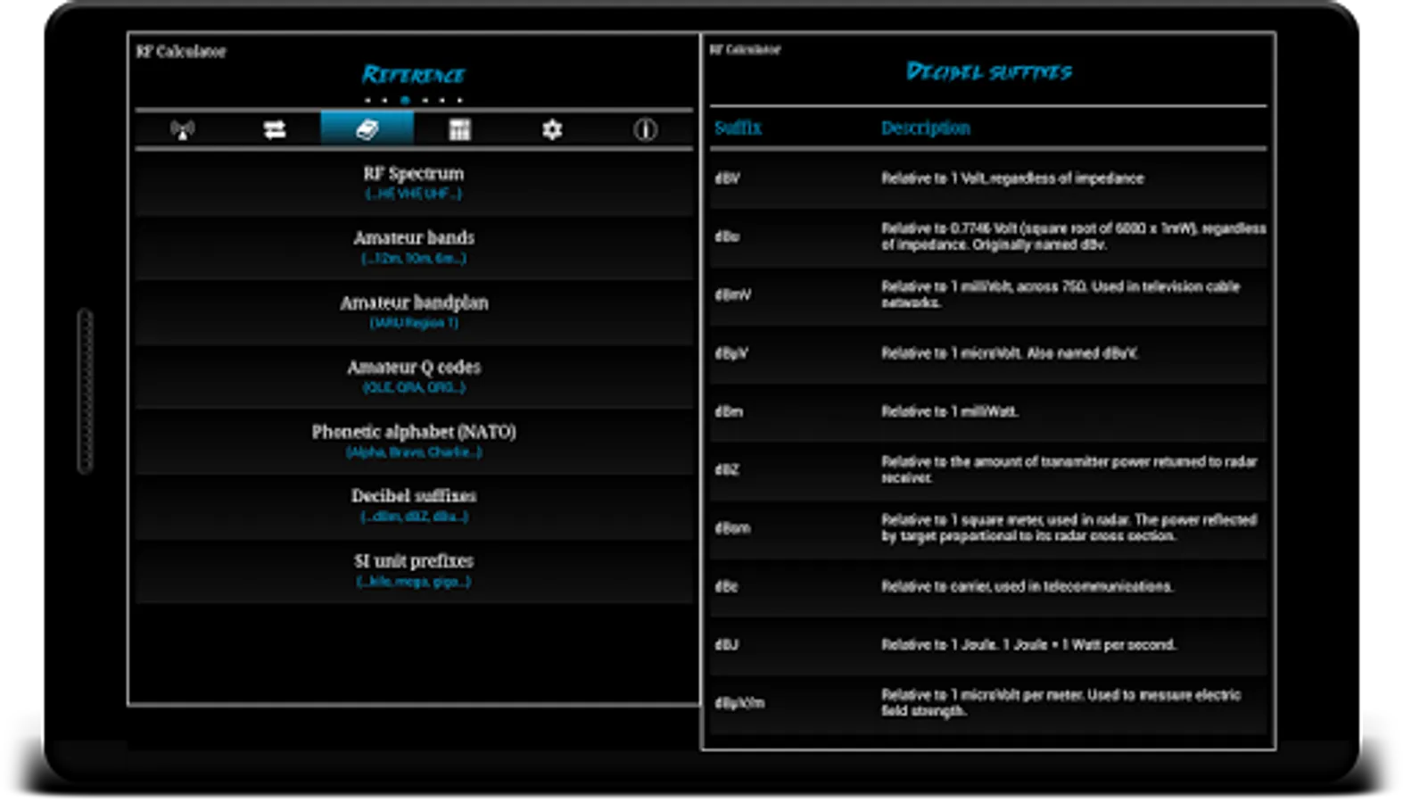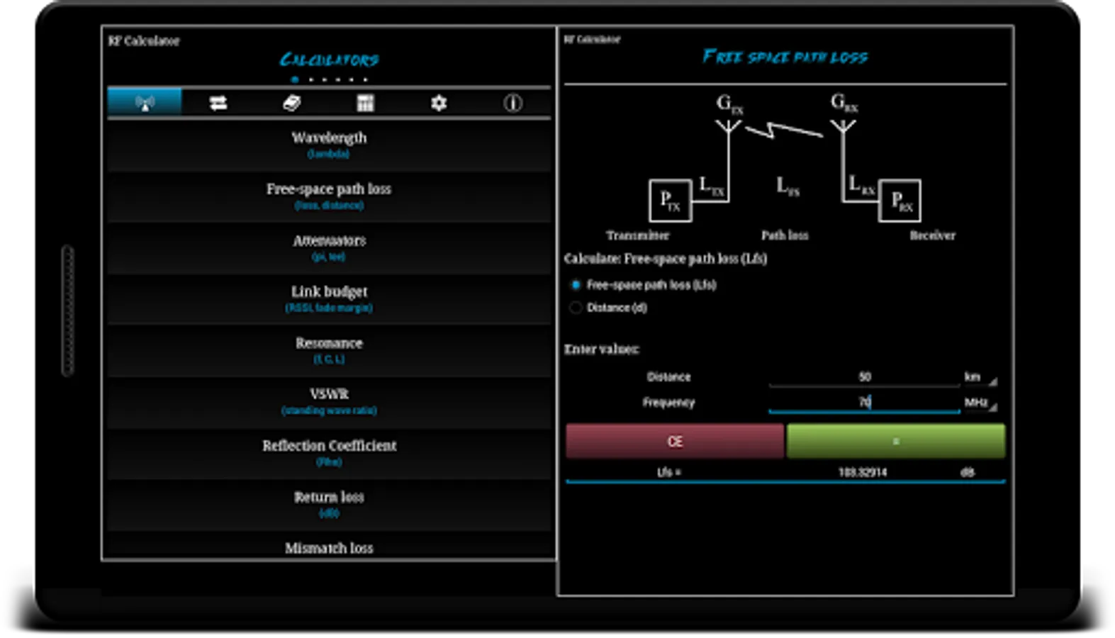 RF Calculator is a utility application consisting of various calculations, conversions and reference tables.
