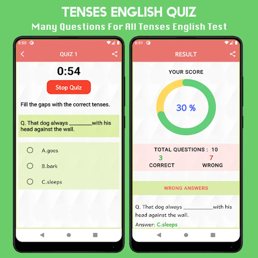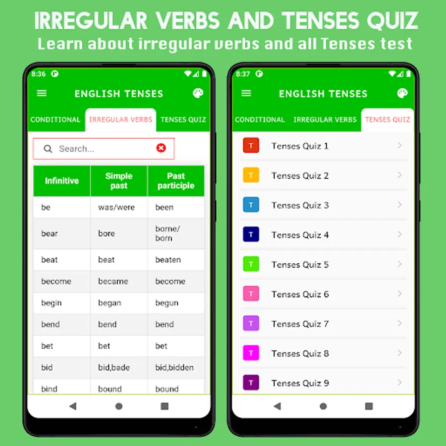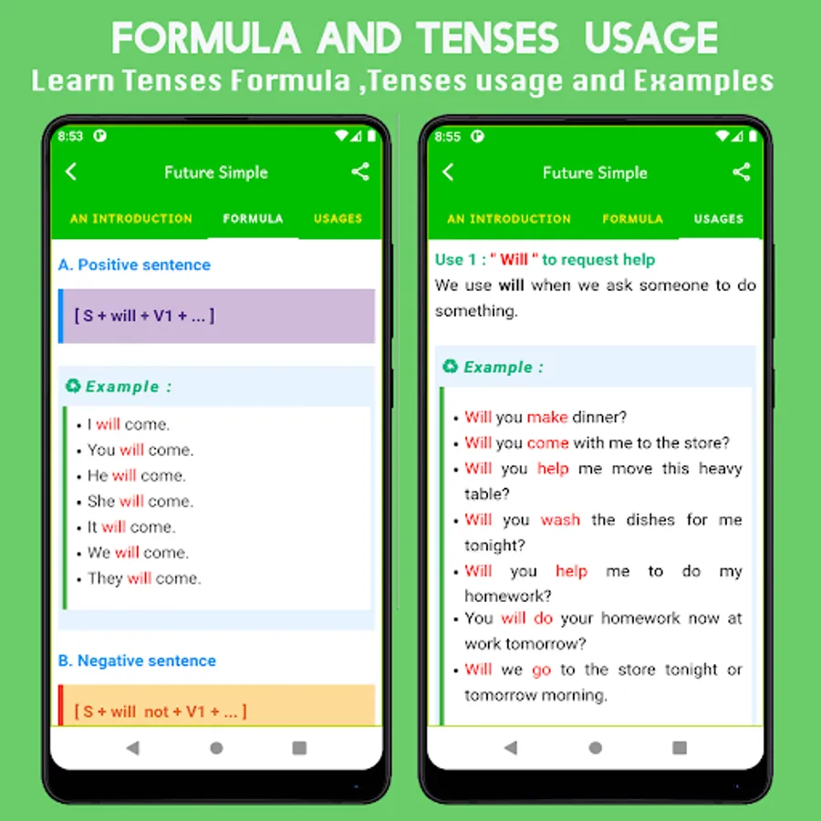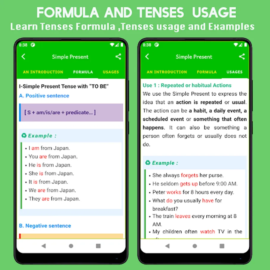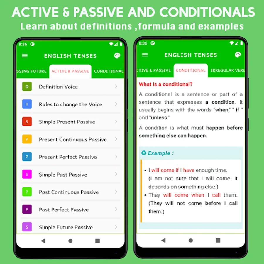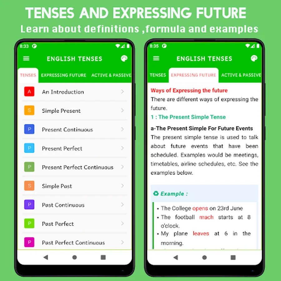 This app learn All English Tenses as follows: