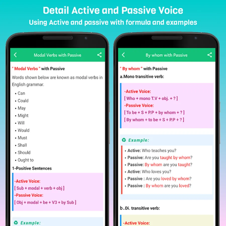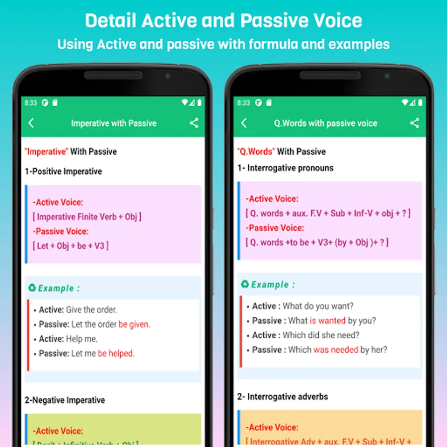 All Active and Passive topics in English practice covered in depth and in a most simple way. You will get information about:
