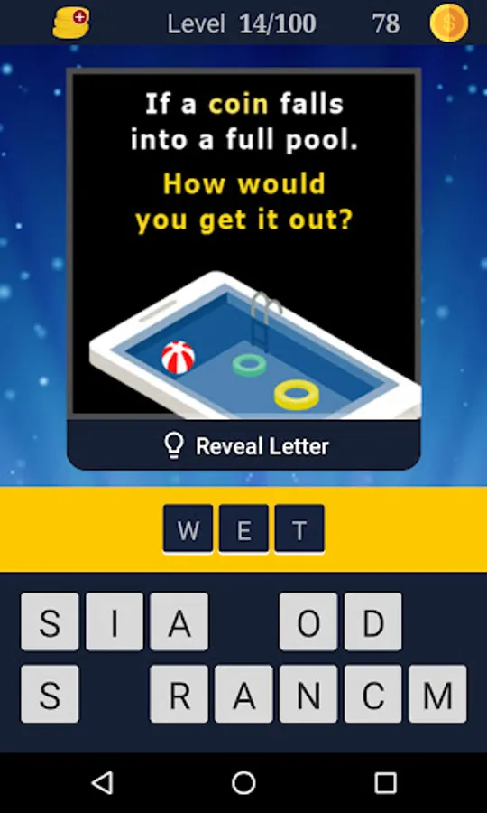 You must solve them by placing the "Letters in the Blocks" to form the correct answer. The Clues will help you advance through the Levels.