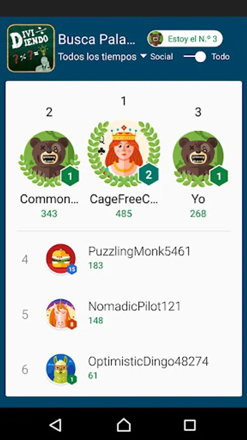 We have a division that falls from the top of the screen and underneath there are 4 clouds, each cloud contains a result.