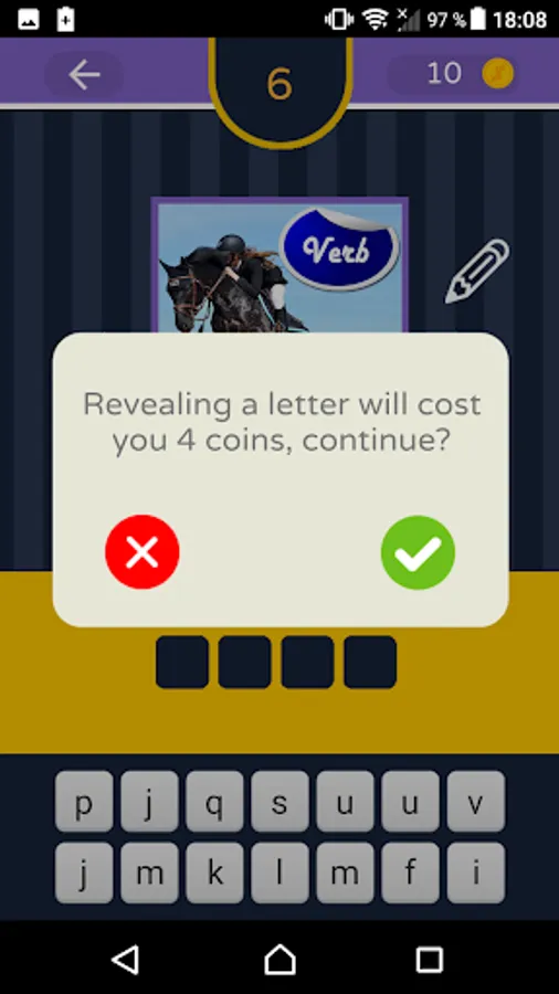 A photo and a word on a sticker to solve the secret word!!. The same photo can have different answers, you must guess it with the word of the sticker: Verb, Adjective, Object, Sport, Animal or Insect. You have doubts? Buy letters or discard them with the coins that you accumulate when you guess and advance through the levels. Have fun thinking! Test your intelligence! Will you pass all levels? Guess all the words!!