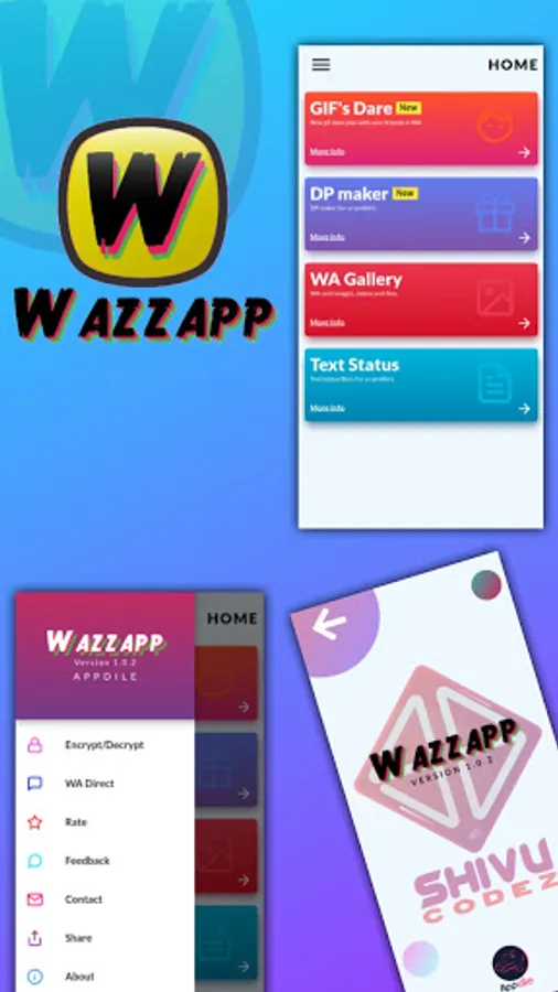 Wazzup - GIF Dare, Status Saver, DP maker and Send secret message using Encrypt and Decrypt.