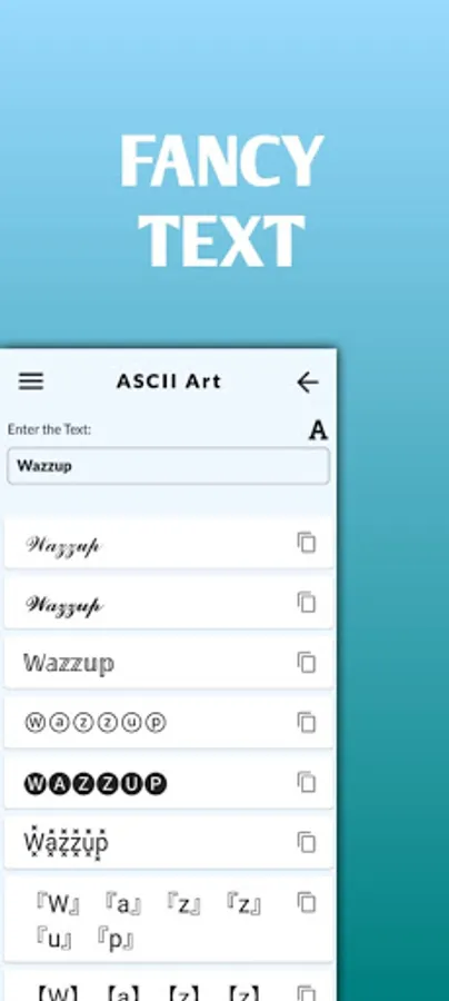 ASCII Art - Generate fancy text using ASCII characters and copy and share with friends.