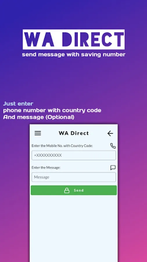 WA Direct - Send Direct message in WA without saving contacts in your phone