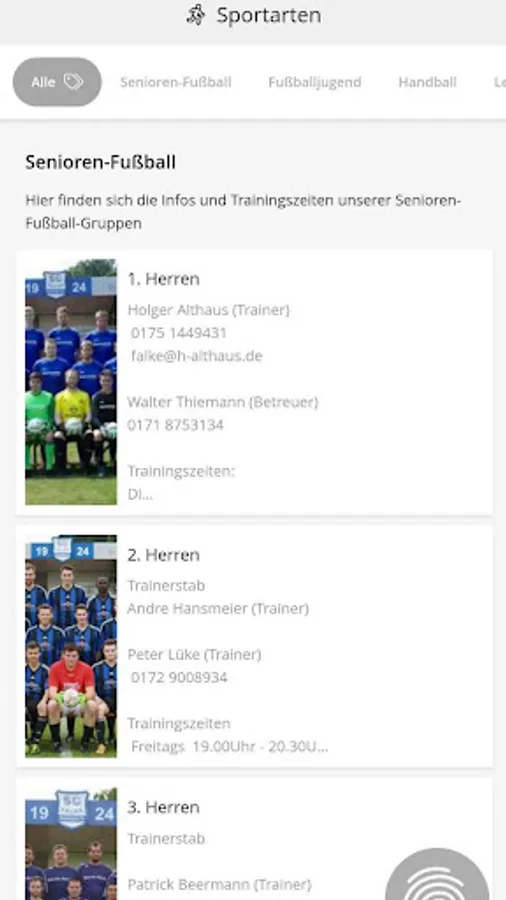 Our sports club SC Falke Saerbeck 1924 e.V. presents its wide range of different sports for all ages in this app: We offer 20 sports under one roof: from children's gymnastics to tennis, athletics and chess to handball, volleyball and football. We not only want to give everyone who is interested the opportunity to gain an overview of this and find direct contacts for the individual sports, but also to always report on current dates and special tournaments and the like. If you are interested in a trial training or membership, everyone will find the necessary contact details here. We look forward to a keen interest and feedback. Your SC Falke Saerbeck 1924 e.V.