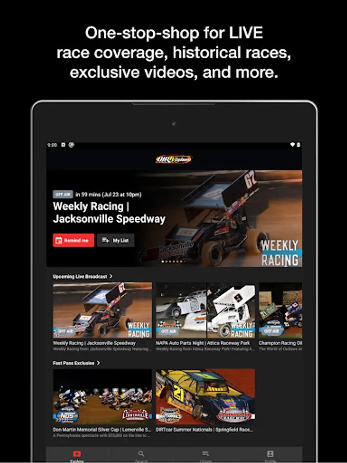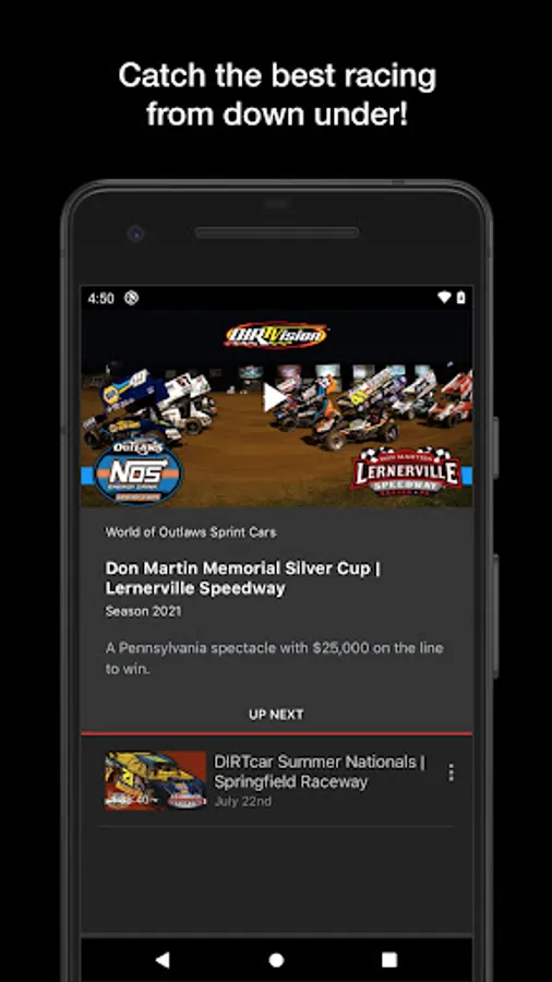 DIRTVision is your premier dirt racing broadcast provider. From LIVE race coverage to historical races, it's your one-stop-shop for exclusive video coverage of The Greatest Shows on Dirt. Sprint Cars, Late Models, Modifieds, Karts, Micro Sprints, and Midgets — we've got the best on DIRTVision!