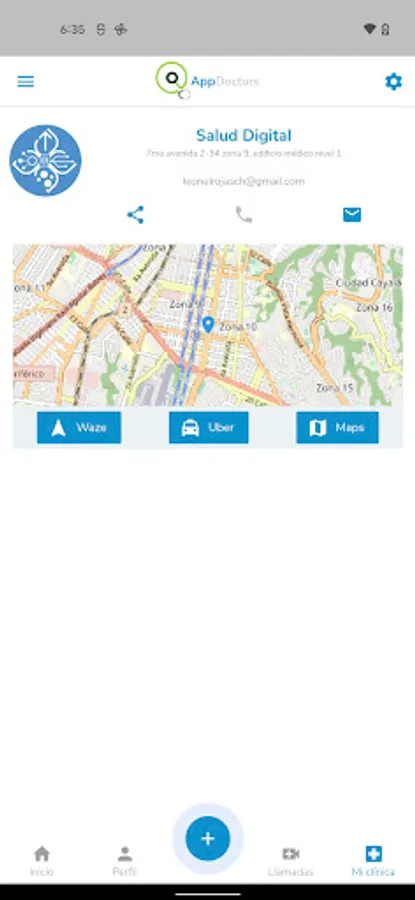 Details of your clinic, navigation using Waze, Uber and Maps.