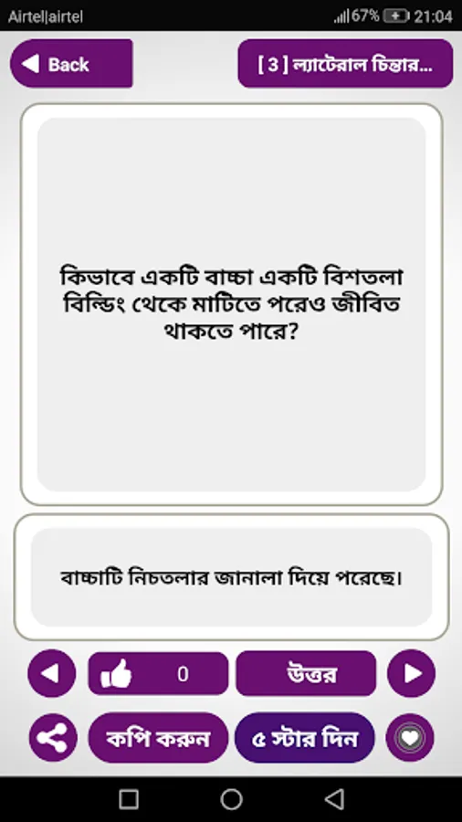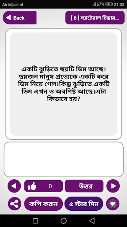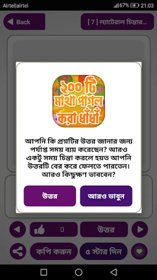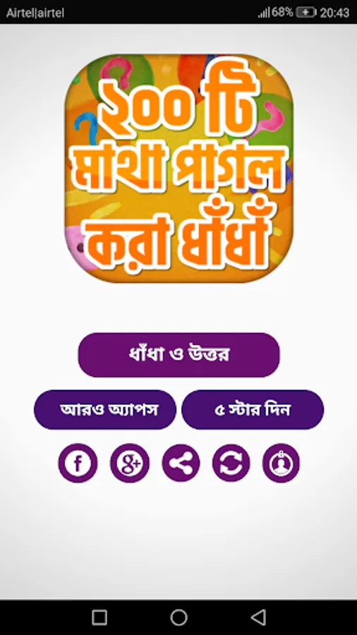The answer to the intellectual puzzle is a bangla dhadha apps The app has been created with puzzle questions and answers. Interesting funny questions will help to sharpen our brain. I have heard the riddle and answers of rural Bengal in the face of our grandmothers. At one time Khana was heard very much. Now the urban people are rudal or puzzles, because they are. Solving a lot of puzzle solved many times
