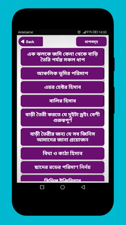 বাড়ি তৈরির যাবতীয় হিসাব নিকাশ (Bari toirir hishab) অ্যাপটি আপনার বাড়ি তৈরি (bari toiri) করতে সাহায্য করবে। একটি বাড়ি বানানোর জন্য প্রথম ধাপ হচ্ছে বাড়ি তৈরির নকশা বা বাড়ি তৈরির ডিজাইন। এরপর আসবে হিসাব। আর এই অ্যাপটি আপনাকে সাহায্য করবে বাড়ি তৈরির হিসাব করতে। শুধু তাই নয় জমি কেনা, জমির পরিমাপ, জমি ক্যালকুলেটর ইত্যাদি এত খুঁটিনাটি বিষয় তুলে ধরা হয়েছে এই অ্যাপে যে আপনাকে বাড়ি তৈরির ইন্জিনিয়ার এর কাছে যেতে হবেনা বললেই চলে।