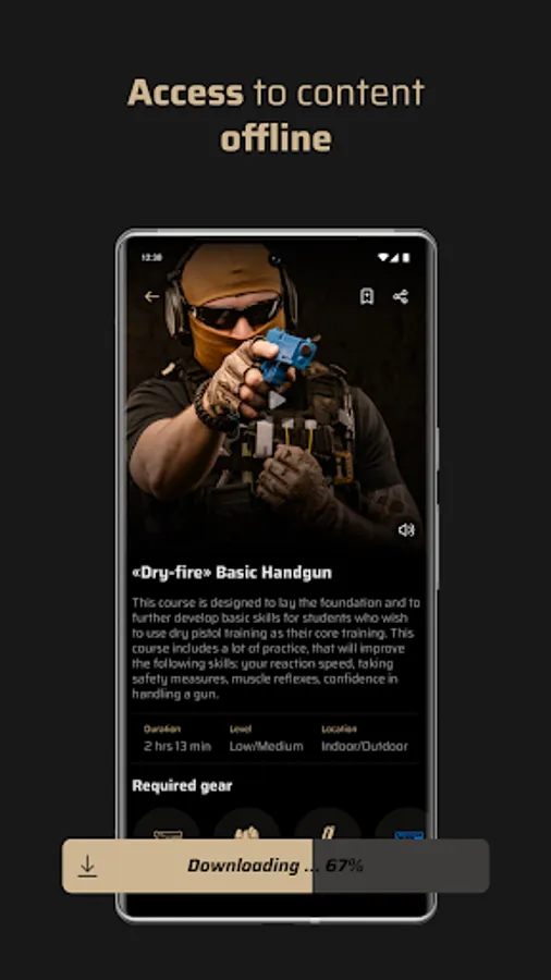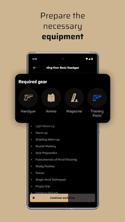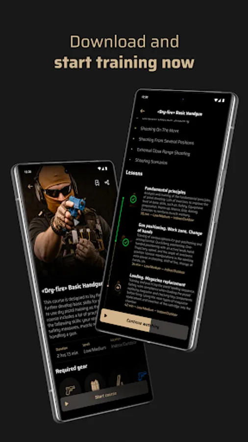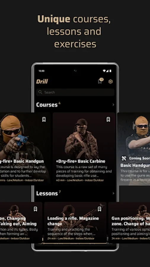 A pistol and carbine training program is available in the app, constantly expanding and updating with new drills. We are actively working on launching courses for other firearm types.