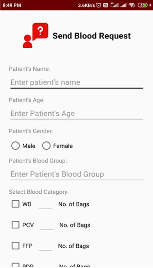 Blood Request:- If any user required emergency blood units, he/she can contact Red Cross by filling simple form with blood requirements and Red Cross Admins will contact them as soon as possible.