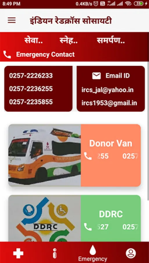 Emergency Contacts:- Their is a special time where user can get all the emergency contacts from Red Cross office Jalgaon.