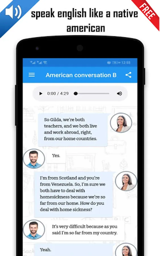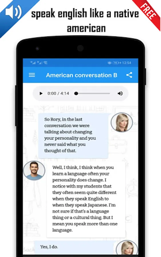 Speaking more fluently actually starts with improving your listening skills. Listening with this app to a range of accents will help you to mimic their speech patterns and sound more fluent in your own speech.