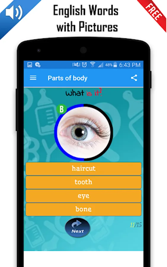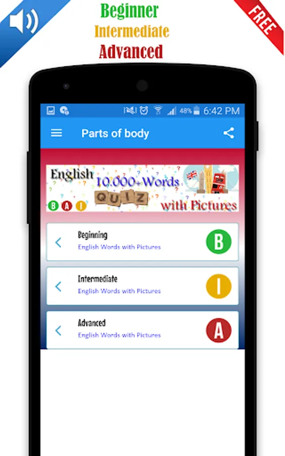 You can learn vocabulary by seeing an images and listen the sound to illustrate words.