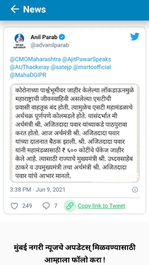 नगरी” न्यूज पोर्टलचे कामकाज हे मुंबई नगरी मीडिया प्रा.लि.च्या माध्यमातून चालते.