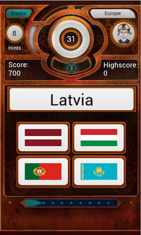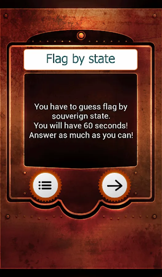 - select on of the task types (guess capital by country name, guess country by capital, guess country's flag or guess flag by country name)