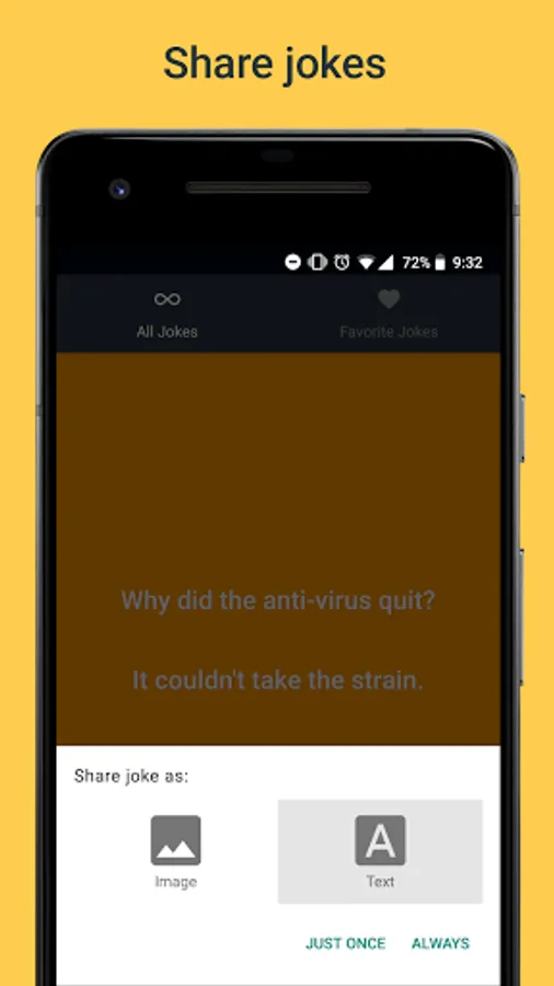 - Share a funny joke with friends or family via the convenient share button (you can choose text or image format)