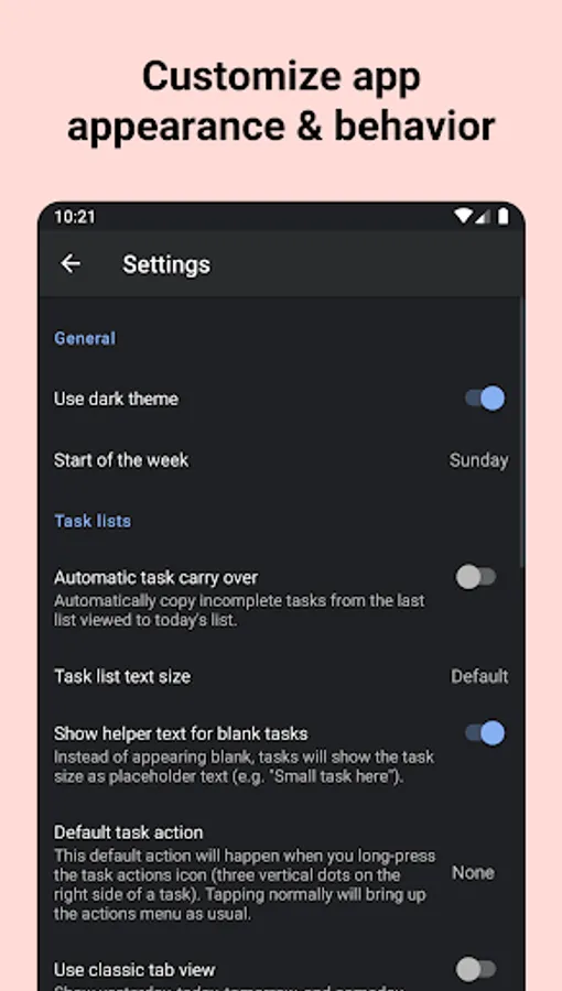• use the settings to enable automatic task carry over