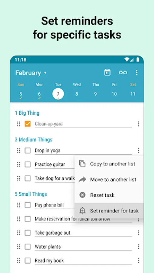 • calendar view to add tasks to any date and plan your week